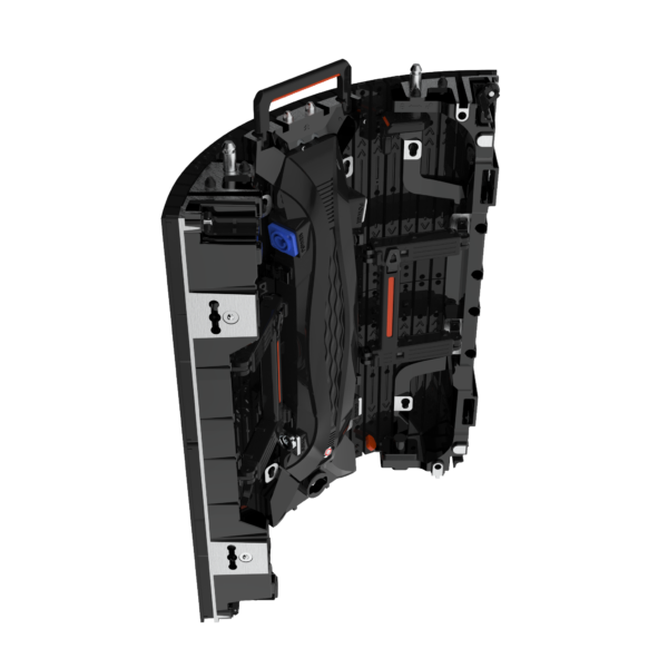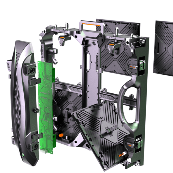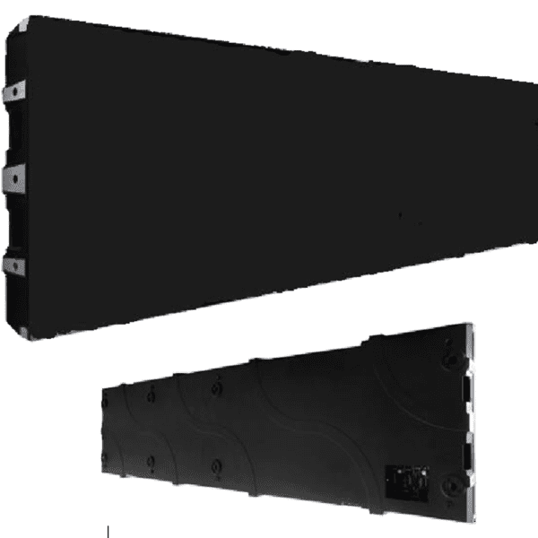 Pantalla de acceso frontal. Pitch 3,9mm. Leds SMD2020 (Black). Brillo 800-2200(HB) cd/m². Tamaño del cabinet 1000×250mm. Resolución del cabinet 128×128 píxeles. Refresco 1920-3840Hz. IP30. Peso 6,3Kg.