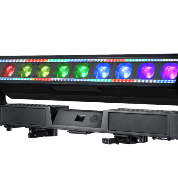 vo-maestro y activado por sonido o automático – canales de control: 8/35/480 canales DMX-512 -ArtNet- consumo: 450W – dimensiones: 1000 x 55 x 100 mm